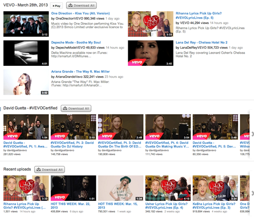 Open Safari( Firefox or Chrome) to browse YouTube Channel or user's videos, there is Download All button on the web page.