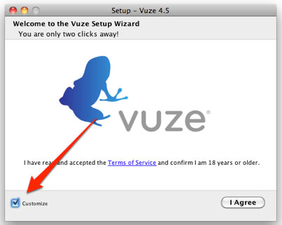 Step1. Before you get started, please turn on your PS3, and make sure it's connected to your local network. Then go to your Mac, download and run the Vuze installer. Place a check in the box labeled Customize, and then click the I Agree button.