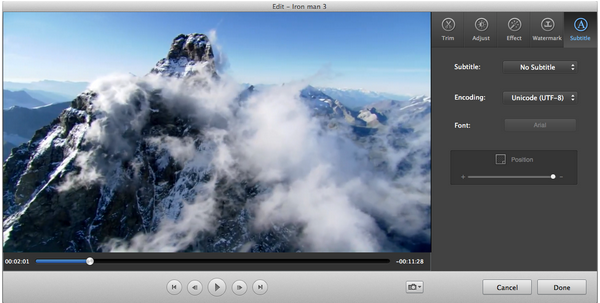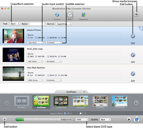 You can edit the imported files before burning to a DVD. Click the Edit button, you can trim, crop, add effect, add watermark and adjust loaded subtitle.
