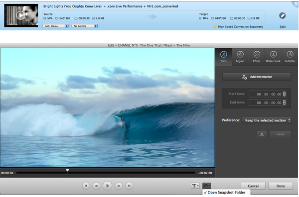 Load the file to the software. Click the Edit button to the right of the video file thumbnail.